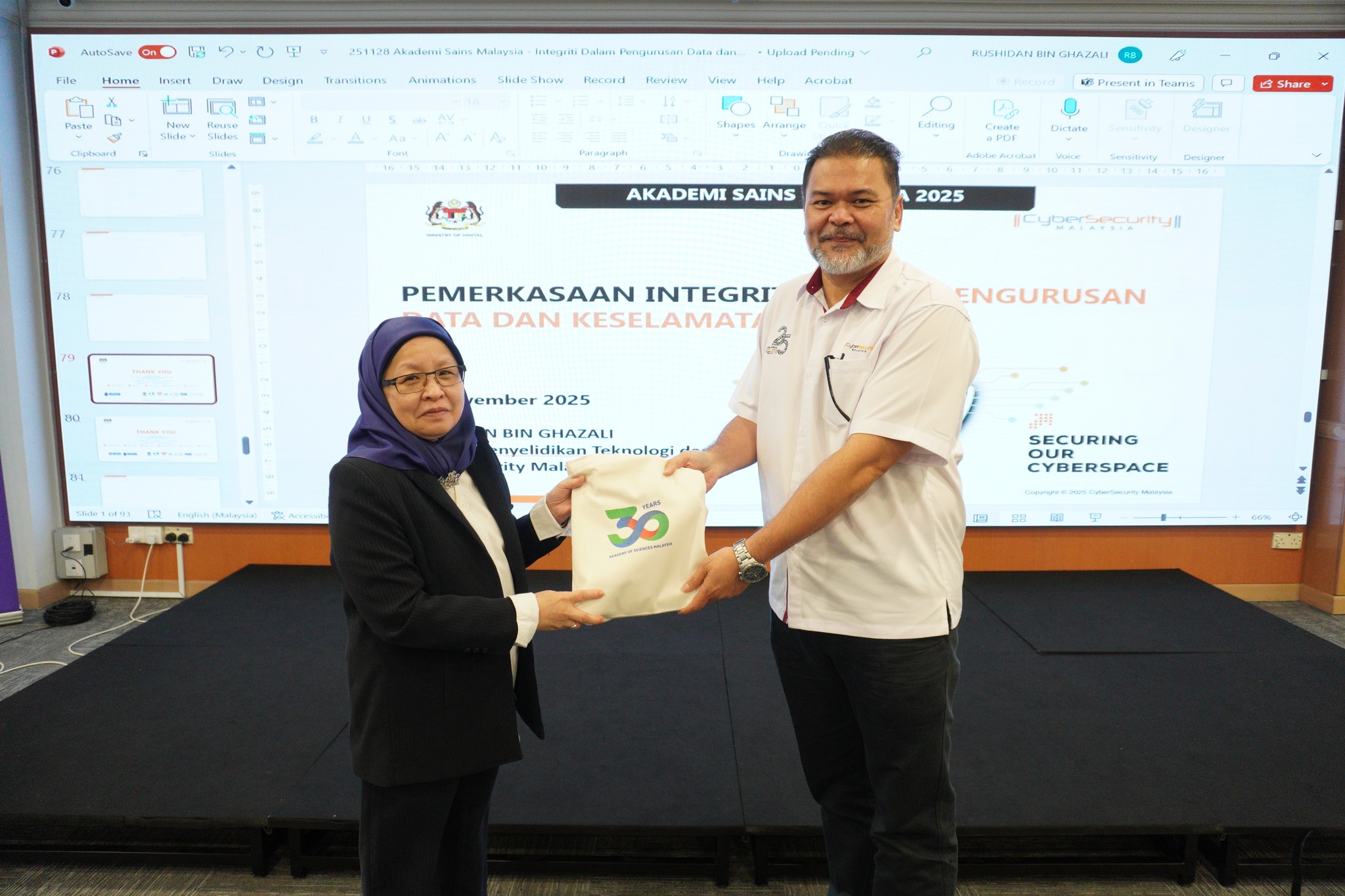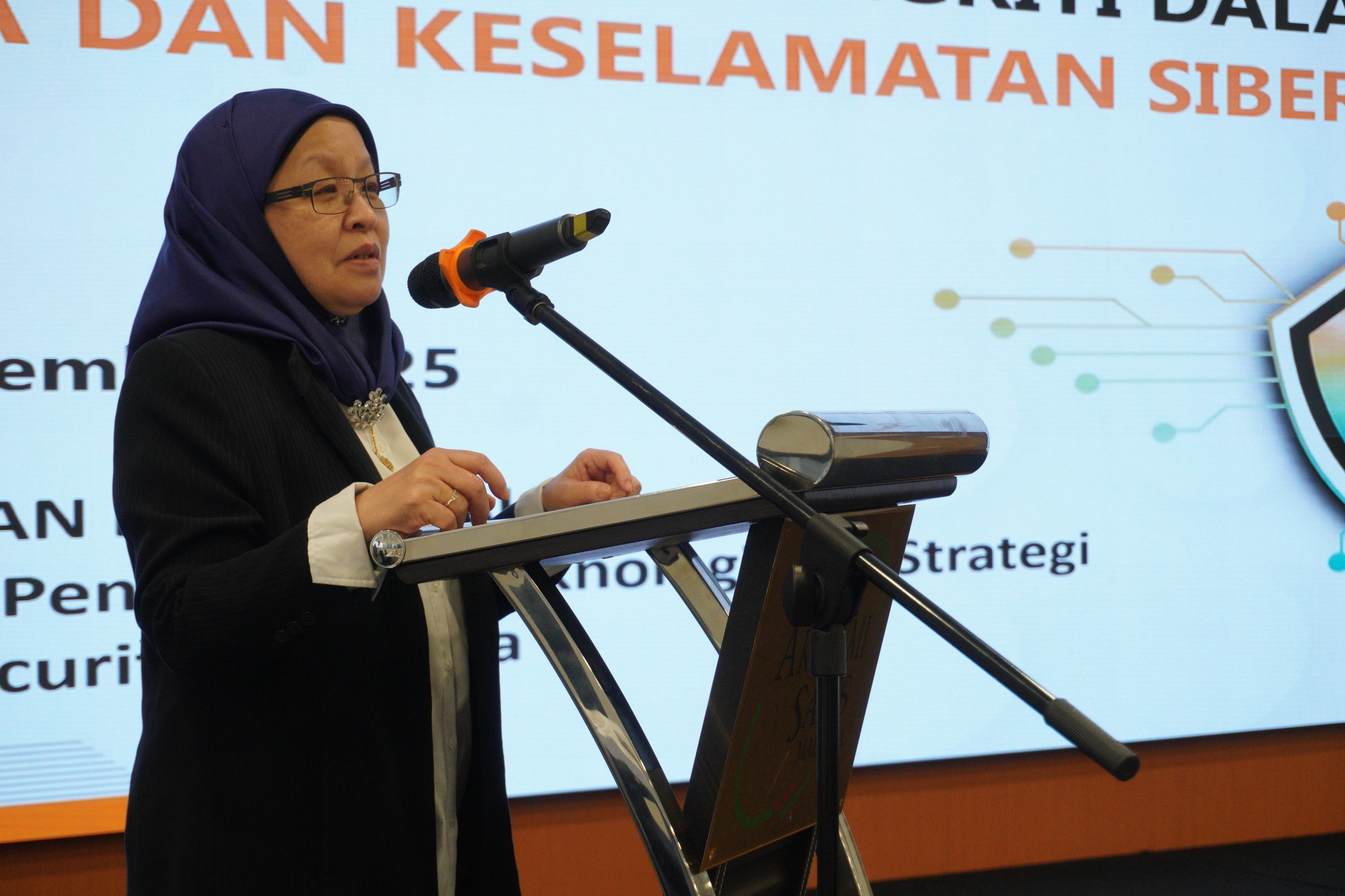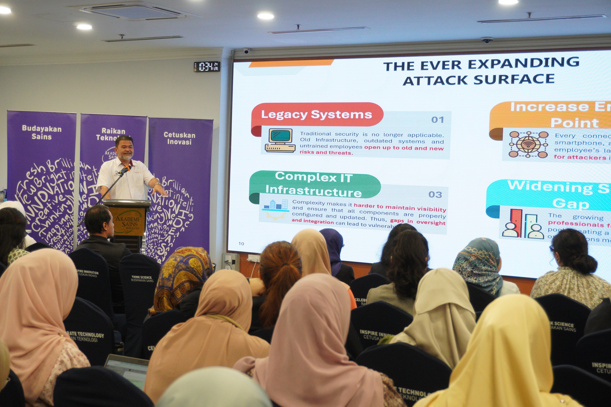A cybersecurity talk titled “Pemerkasaan Integriti dalam Pengurusan Data dan Keselamatan Siber” was delivered by the Head of the Technology Research and Strategy Department of CyberSecurity Malaysia, Mr Rushidan Ghazali.