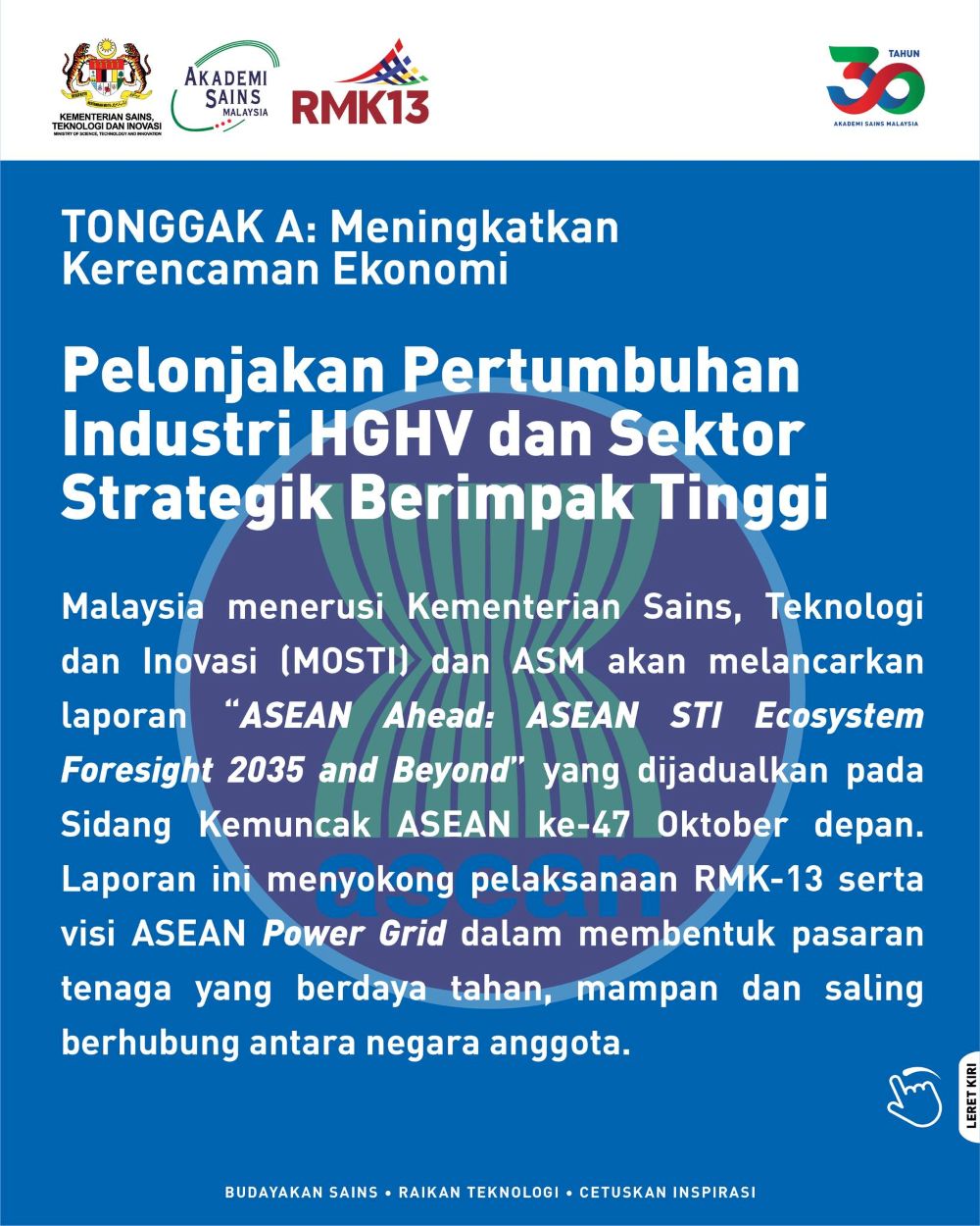 ASM akan terus memacu pendekatan quadruple helix yang merangkumi kerajaan, akademia, industri dan masyarakat sivil bagi memastikan dasar negara kekal inklusif dan berimpak tinggi.