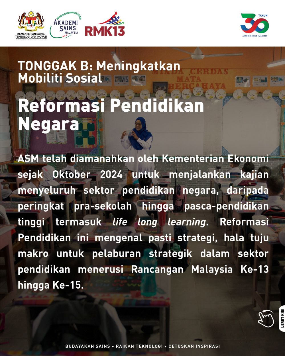 October 15, 2025Rancangan Malaysia Ke-13 (RMK-13) menegaskan komitmen Kerajaan terhadap dasar berasaskan Sains, Teknologi, Inovasi dan Ekonomi (STIE).